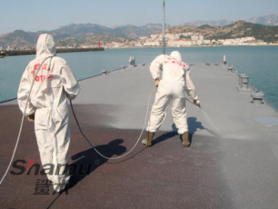 純聚脲材料具有優良的防腐、防滑、防滲和耐磨性能。可廣泛應用于高速鐵路混凝土路基防護;并可應用于跨海大橋橋墩防護、海底隧道內壁防護、城市地鐵防水、高級建筑屋面防水、體育場館混凝土看臺、工廠、艦船甲板、海上鉆井平臺防腐等領域。