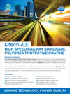 Qtech-400 High Speed Railway Sub Grade Polyurea Protective Coating is the state of the art 100% solids, ultra fast cure, flexible, spray-applied, high build, and two components aromatic pure polyurea elastomer. The system consists of A component, a quasi-prepolymer rich of free NCO, and B component, a mixture of polyetheramines, amine extenders and other additives. Qtech-400 is used by itself or in combination with other materials to produce protective coatings, liners, wearing courses, and resilient surface on high speed railway sub grade and other substrates. Qtech-400 can produce an extremely tough film at all thicknesses; it may be applied in all positions and to any suitably prepared substrate. Qtech-400 is relatively moisture and temperature insensitive, allowing application in the most problematic ambient conditions. It is the optimum choice where a tough, flexible, impact resistant, abrasion resistant, anti-corrosion, waterproof surfacing system which exhibits extraordinary performance characteristics.