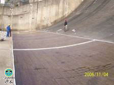 Furthermore we sprayed grey SPUA coating at Xin’anjiang reservoir spillway dam according to the above mentioned method A with 1200 square meters for a large scale test. See figure 10 and 11.